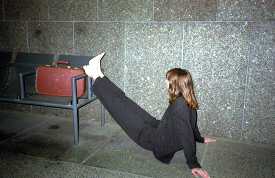 Formal clothes, a luggage and the desire to change something in life.